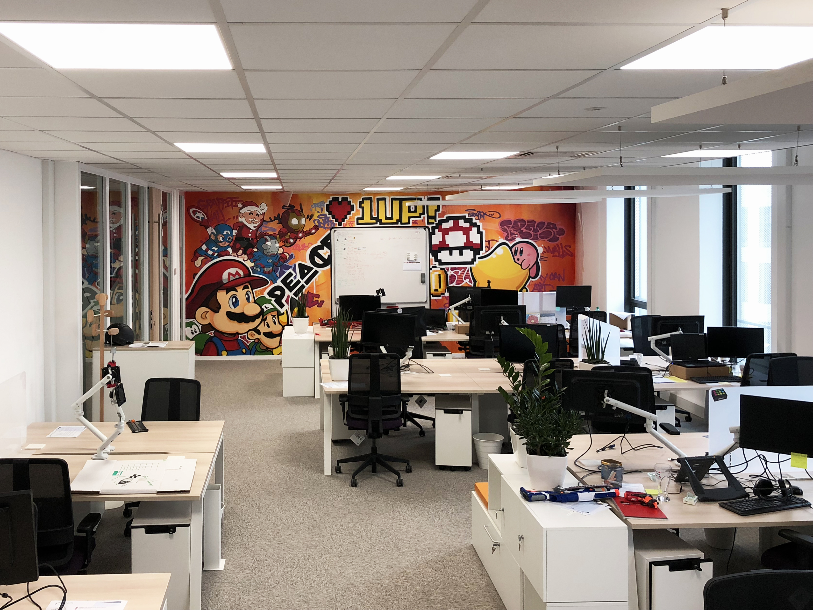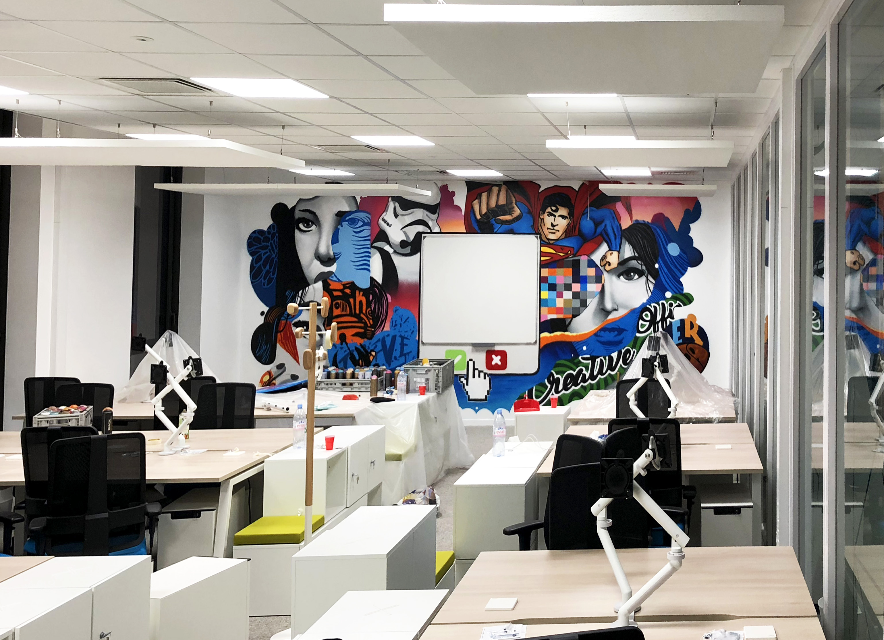 Decograffik transforme vos bureaux et espaces professionnels grâce à des fresques murales uniques et une signalétique créative sur mesure. Spécialement pensées pour les startups et les entreprises innovantes, nos réalisations renforcent votre image, stimulent la créativité de vos équipes et valorisent votre culture d’entreprise.
